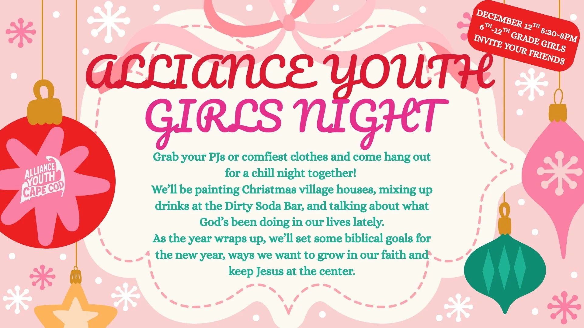 Alliance Youth is for students in grades 6 through 12. We gather almost every Wednesday from 6:00pm-8:00pm for an evening of fun, friendship, and growth in our understanding of the love of God together