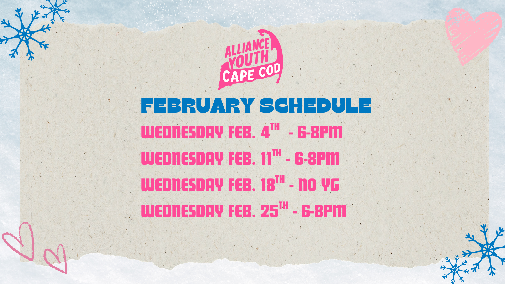 We are so excited for what is in store in 2026 for Alliance Youth!! Join us Wednesdays from 6-8pm. See below for what we have going on!